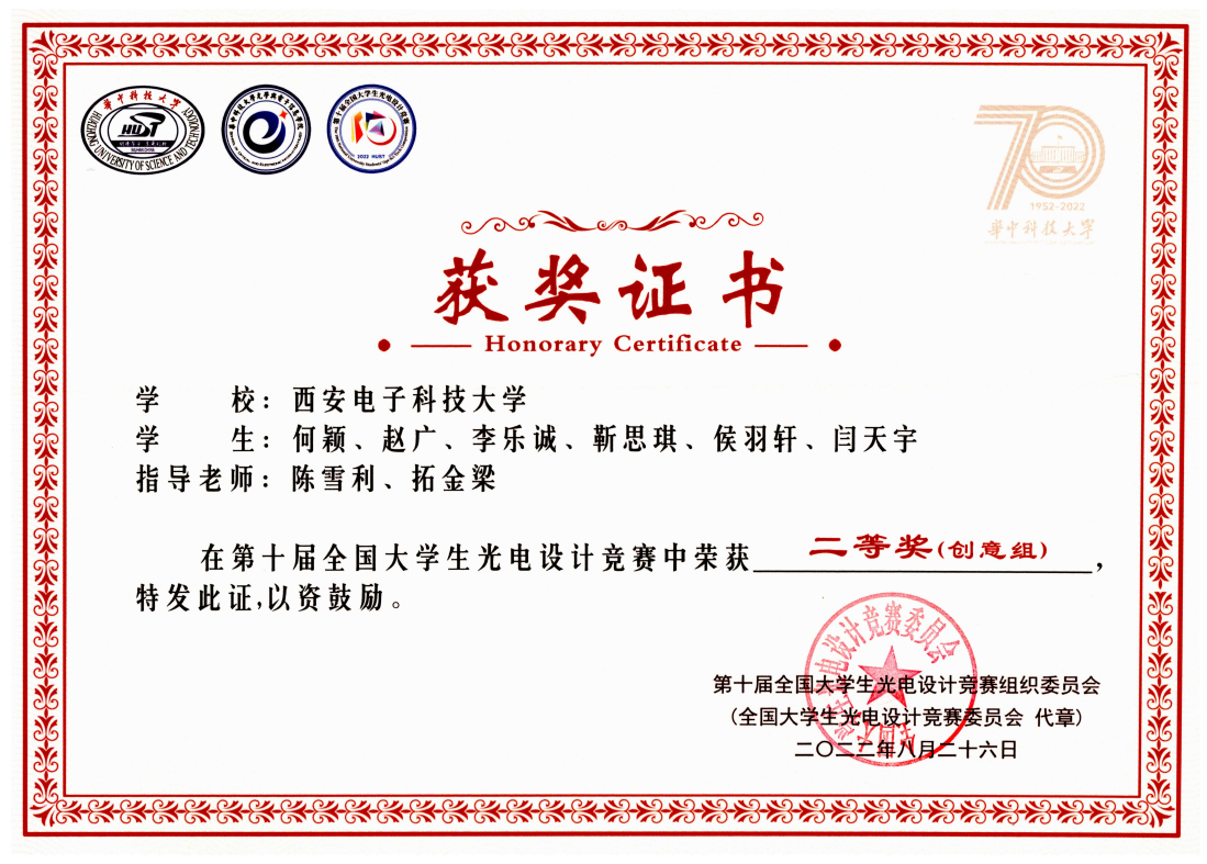 (通讯员:解培月 吕强)第十届全国老员工光电设计竞赛决赛于2022年8月26日在华中科技大学以线上创新赛形式圆满落幕,经过西北区赛和全国决赛阶段的激烈角逐,ballbet贝博martini代表队获得2项国家二等奖、11项西北区赛奖的好成绩。