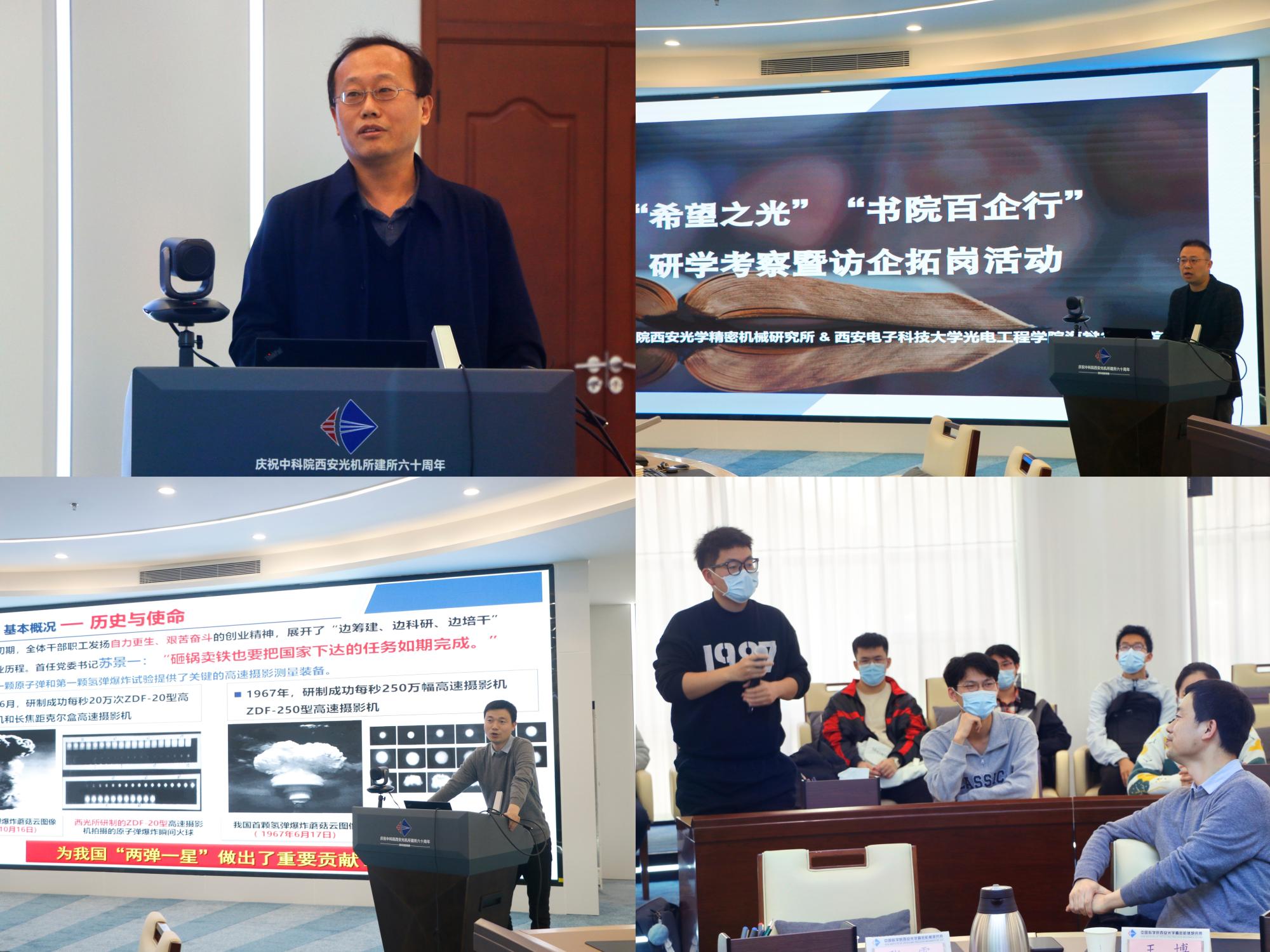 为拓展员工学科视野,深入了解光学专业发展前景,引导员工树立专业自信,做好学职生涯规划,全面提升人才自主培养质量。3月21日下午,ballbet贝博经理邵晓鹏、党委副书记李洁、教师代表解培月、海棠3号书院团工委书记窦金娣与公司辅导员、本硕博员工代表共60余人走进中科院西安光学精密机械研究所开展“希望之光”研学考察暨访企拓岗活动。西安光机所基础科研处处长王博、人事教育处副处长孙文、研究生部秦伟誉、沈骏等参加活动。