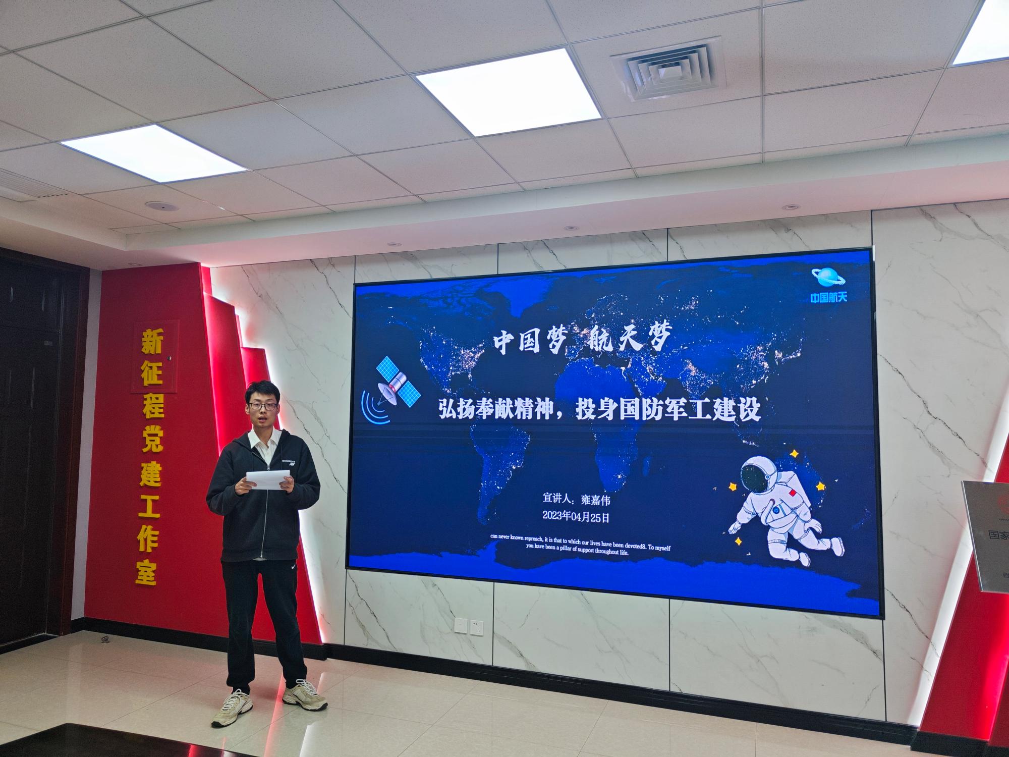 公司研究生雍嘉伟以“弘扬奉献精神,投身国防军工建设”为主题进行宣讲。他通过习近平总书记在纪念中国人民志愿军抗美援朝出国作战70周年大会上的讲话,阐述了国防军工建设在国家发展中的重要地位和意义,并围绕毛泽东主席等老一辈领导人以及钱学森、邓稼先等科研工作者对国防军工事业发展做出的重要贡献、中国航天事业的发展现状、新时代下青年人应该如何行动等三个方面进行宣讲,号召新时代青年应怀揣理想抱负,为祖国的国防事业贡献自己的力量,走出有价值、有意义、更加充实的人生之路。