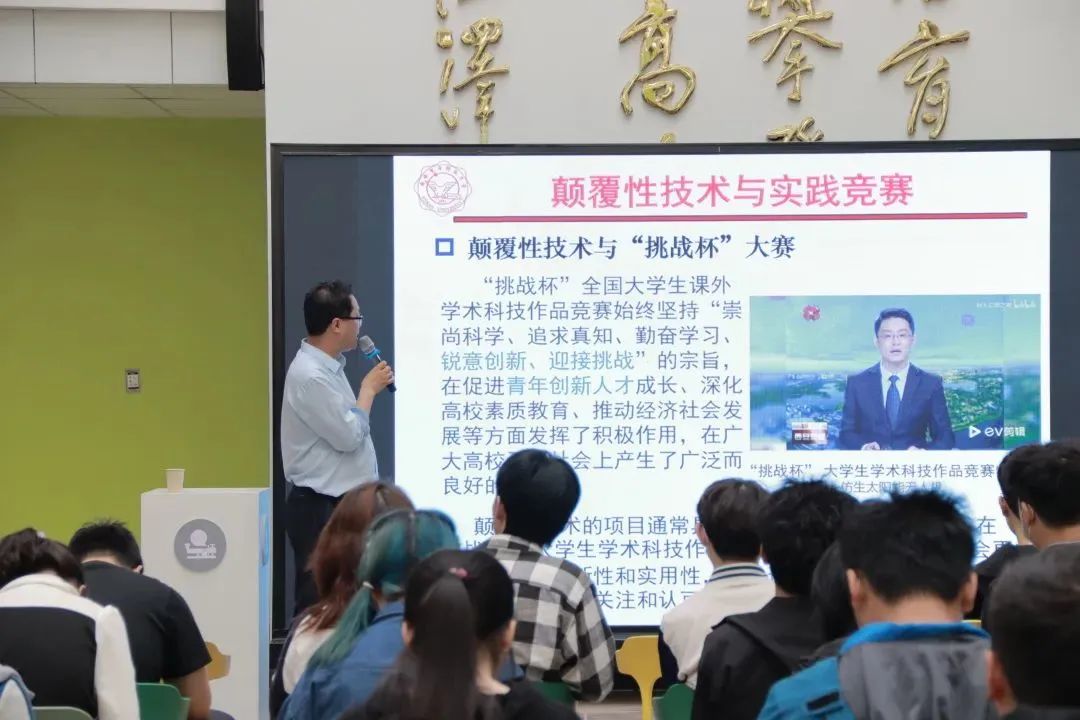 5月25日下午,ballbet贝博副经理、博士生导师秦翰林教授受邀做客“海棠领航者”系列讲座第七讲,以“颠覆性技术创新与学科竞赛探讨”为主题在海棠5号楼2楼大厅开讲。来自海棠1号书院、ballbet贝博的100余名员工参加讲座。