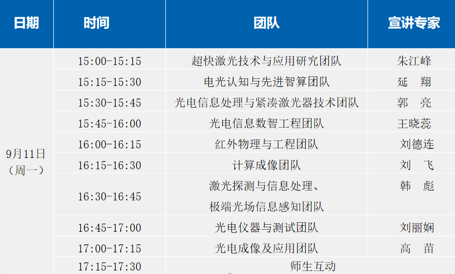 宣讲会上,来自超快激光技术与应用研究中心、电光认知与先进智算、光电信息处理与紧凑激光器技术、光电信息数智工程团队、红外物理与工程、计算成像团队、激光探测与信息处理团队、光电仪器与测试、光电成像与应用等团队的教师代表,分别介绍了所在团队的研究方向、研究成果、团队队伍,围绕奖助政策、就业去向等同学们关心的问题,老师们用生动详实的案例辅以幽默风趣的语言进行认真解答,加深了同学们对科研团队的了解。