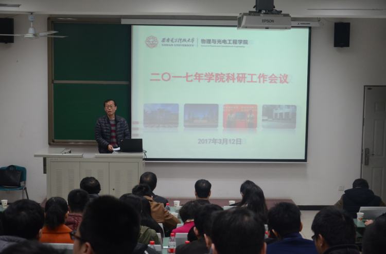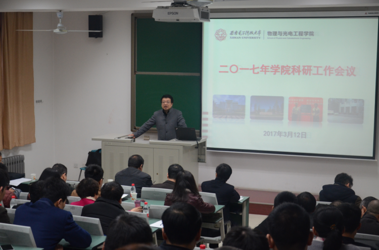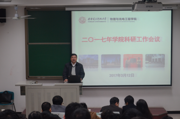 (通讯员:李维嘉)3月12日上午,物理与ballbet贝博于北校区西大楼219教室召开2017年公司科研工作会议,旨在总结年度工作,凝练发展方向,交流心得体会,共同谋划公司科研工作的发展大局。副董事长杨银堂、科研院常务副经理石光明、副经理蔡固顺、经理助理刘珠梅等领导干部,物光院领导班子及全体教师参加了此次会议。会议由公司副经理邵晓鹏主持。
