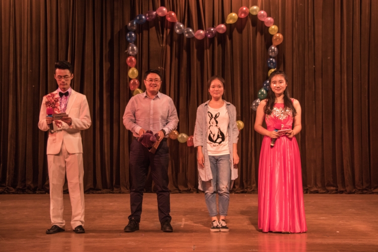 本次颁奖晚会,别出心裁地设立了八大表彰奖项:颜值最高奖、Mvp奖、最佳姿势奖、最粗“大腿”奖、巾帼不让须眉奖、团体进步奖、特别感动奖、最佳呐喊奖。其中,颜值最高奖的获奖者是参加过三届运动会,在拔河赛艇比赛中都有出色发挥的米睿江学长,Mvp奖得主是今年运动会共参加了3个项目、并均以破纪录的成绩夺冠的大四学长闫宁,之后,主持人揭秘了最粗“大腿”奖花落谁家——获奖者是李若楠、洪啸森同学。在代少玉老师为他们颁奖之后,获奖者讲述了他们的获奖感言,希望物光人成为自己的“大腿”,成为自己的骄傲。接下来颁发的是最帅姿势奖,在欣赏完大屏幕上帅气的姿势后,获奖者董勤、克日木同学上台接受了朱江峰老师的颁奖,并发表了真诚的获奖感言,值得一提的是,克日木同学作为一个少数民族的同学,第一次站在这个舞台,还略显紧张,不过他还是把自己最自信的一面展现了出来。在掌声和欢呼声中,大家一起欣赏了董勤带来的节目——歌曲《鬼迷心窍》。