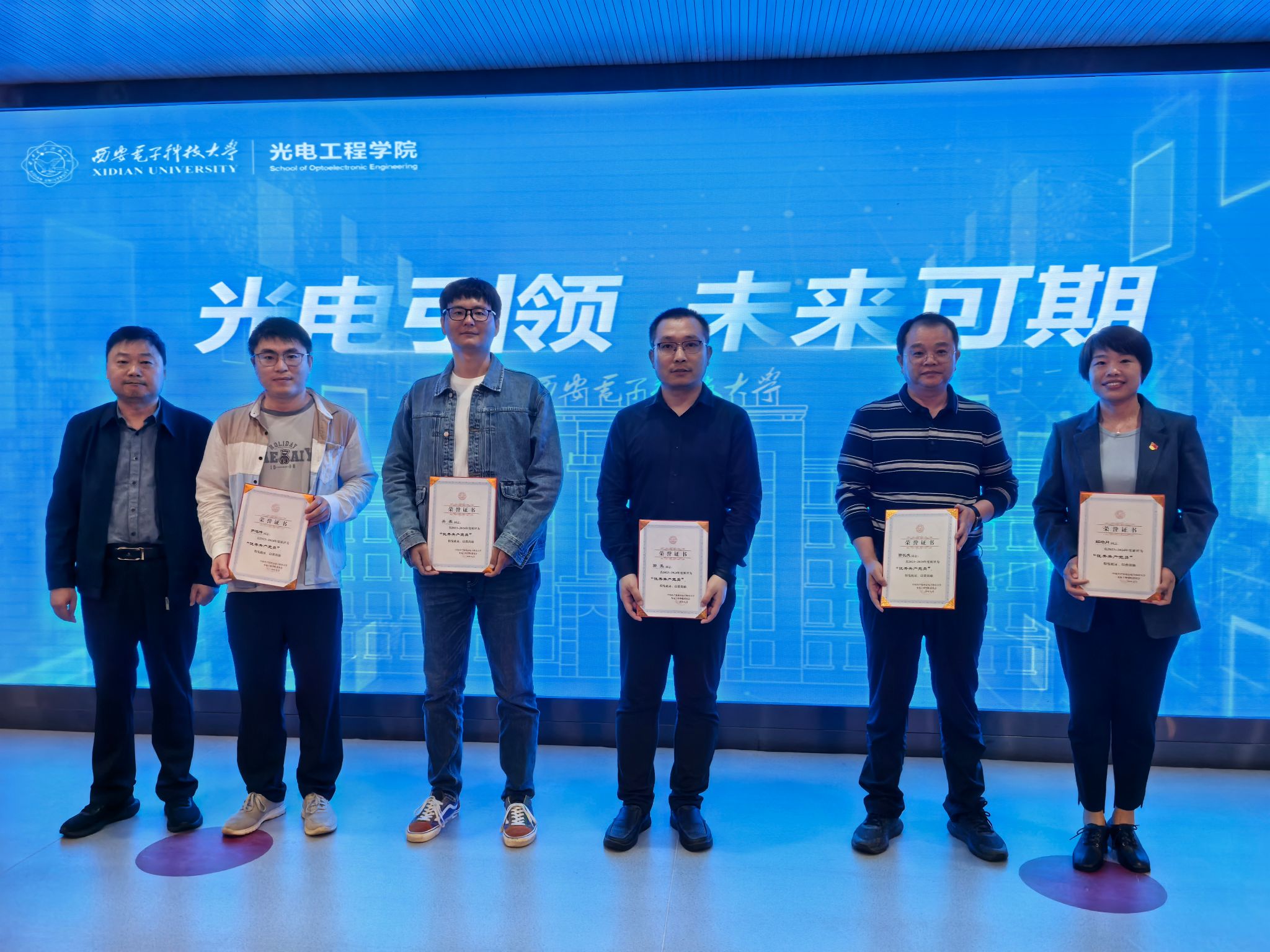 会上,对2023-2024年度先进个人进行了表彰。独国社宣读了表彰决定,独国社、徐淮良为获奖教师颁发荣誉证书。