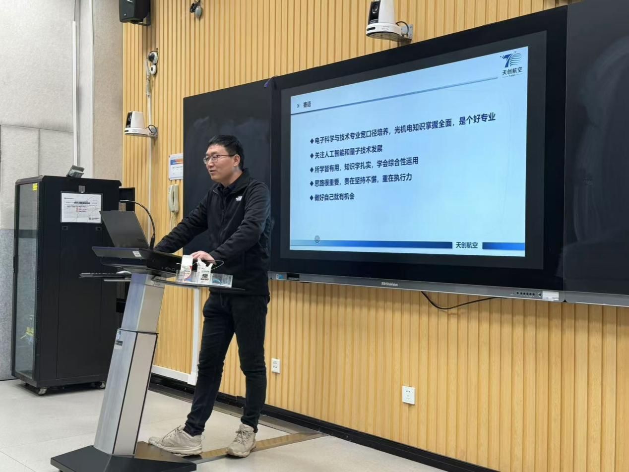 (通讯员:来志、王烁程)为加强光电拔尖创新人才培养,引导员工了解学科前沿进展,拓宽学术视野,激发专业课程学习热情, 2024年11月16日上午10时,ballbet贝博martini南校区智慧教室C104内,受ballbet贝博来志副教授邀请,航空工业自控所创新中心首席科学家李彬博士为公司2023级和2021级电子科学与技术专业卓越班带来了聚焦“大气数据系统与激光测风雷达技术”的专题讲座。