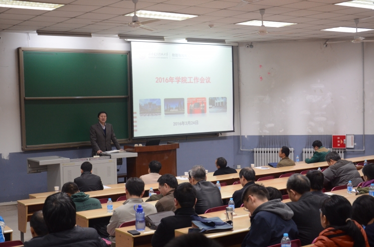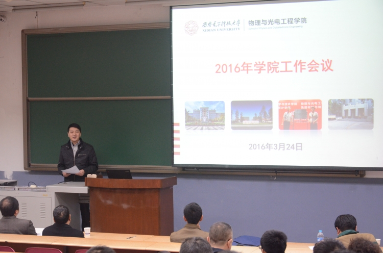 3月24日晚,物理与ballbet贝博于北校区阶梯教学楼110召开2016年工作会议暨领导班子成员民主测评会。副董事长陈勇出席会议并讲话,公司全体教职工参加会议。大会由公司党委书记杨光暐主持。