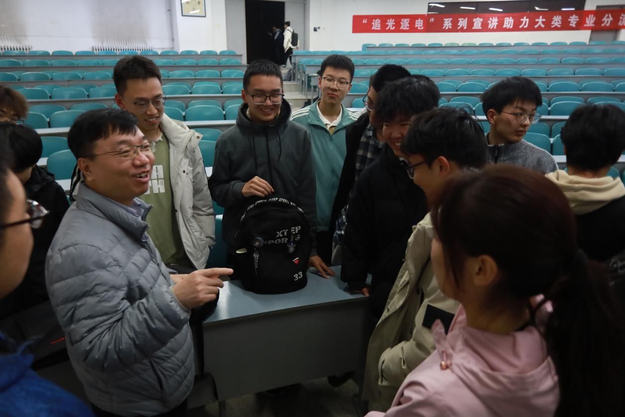 “光电技术在信息储存领域未来发展走向如何?”“光子芯片在日常生活中的应用有哪些?”“公司在人才培养的过程中如何深度融入人工智能等前沿新技术,以契合当前科技快速发展的趋势?”“公司对于本科生参加科研和竞赛活动有哪些建议和支持?”同学们在交流答疑中热情高涨,展现出对知识的渴求。徐淮良结合深厚的专业知识和丰富的教学科研经验,深入浅出地阐释了相关概念、科学原理和实际应用,逐一为同学们答疑解惑。与会员工纷纷表示,本次讲座帮助同学们拓宽了专业视野,为今后的学习和职业规划提供了重要的指引。
