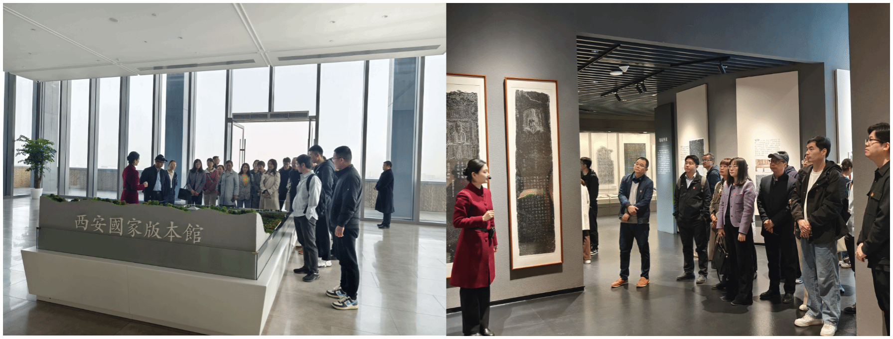 西安国家版本馆作为国家版本资源总库和中华文化种子基因库,致力于保藏具有重要历史文化传承价值的各类版本资源。在讲解员的带领下,大家详细了解了国家版本馆“一总三分”的总体布局和西安分馆项目建设、规划设计、建筑特点、收藏版本等情况,依次参观了《赓续文脉 踔厉前行—中华文化经典版本展(西部篇)》、《楮墨遗珍 万里同风—丝绸之路版本展》及《延安精神红色血脉》等展厅。