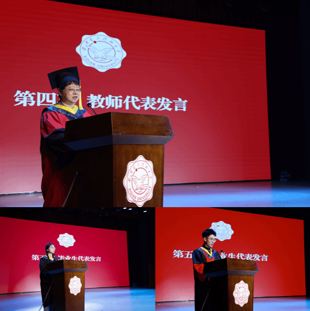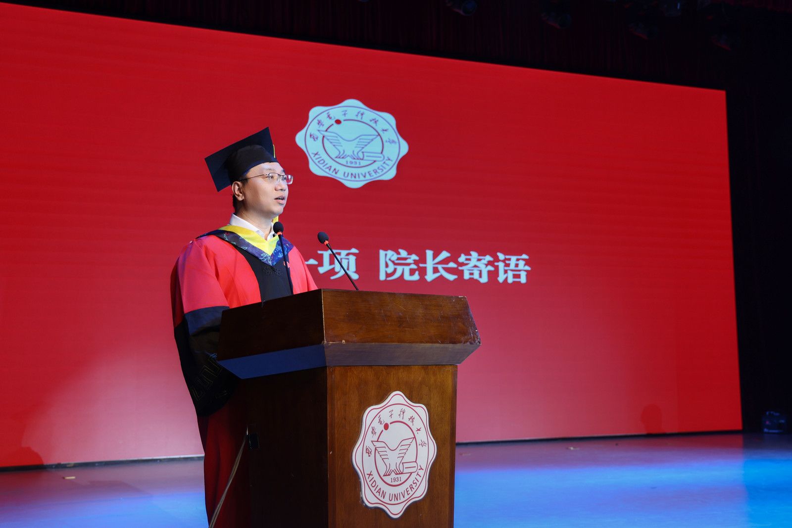 教师代表马琳以“底线、韧性、担当、热爱”四个关键词寄语毕业生,叮嘱他们“在纷扰中不失清澈,在挑战中磨砺意志”,无论来自何方、身在何处,西电永远是同学们的精神原乡。本科毕业生代表王玉楠在发言中感恩公司、公司和老师们的培养,表示将会用一生去诠释“厚德、求真、砺学、笃行”的校训,用行动和奋斗书写属于ballbet贝博、属于西电人的华彩篇章。研究生毕业生代表袁帅表示“艰苦奋斗、自强不息、求真务实、爱国为民”的西电精神早已融入血脉,未来将继续扎根科研、投身教育,把青春写在祖国最需要的地方。