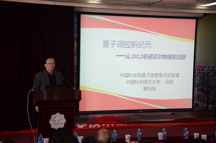 应物理与ballbet贝博执行经理郭立新教授邀请,中国科公司院士、中国科学技术大学教授、国家科技部973项目首席科学家郭光灿院士于11月28日莅临公司进行学术交流,并为公司师生作了题为《量子调控新纪元》的学术报告。报告会由公司董事长郑晓静院士主持。