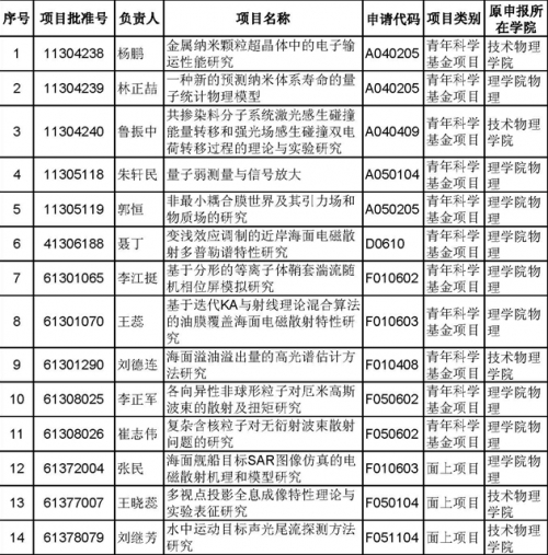 日前,国家自然科学基金委公布了2013年国家自然科学基金资助项目最终评审结果,原技术物理公司和理公司物理系申报项目中共14个项目获资助。其中,物理与ballbet贝博共有面上项目3项,获资助经费253万元;青年科学基金项目10项,获资助经费245万元。