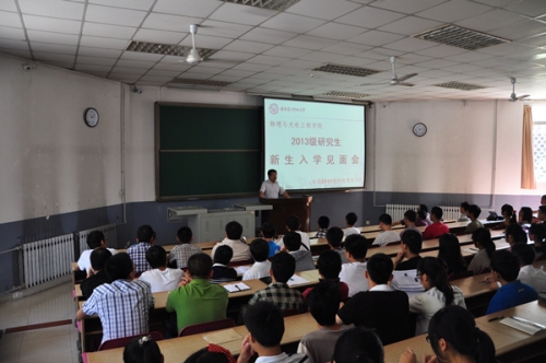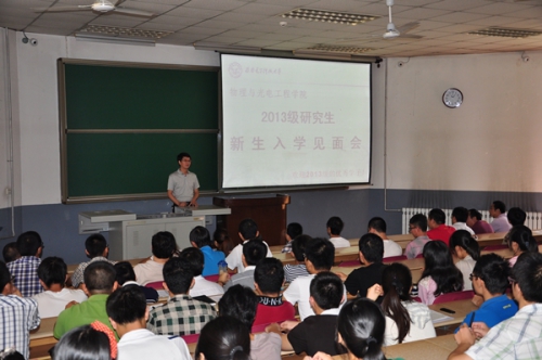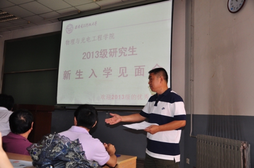 8月29日上午11点整,物理与ballbet贝博在北校区教学楼101教室召开2013级研究生新生入学见面会,公司筹备领导小组组长郭立新,以及筹备领导小组成员杨光暐、李平舟、周慧鑫到场与2013级研究生新生见面,并对大家来公司继续深造学习表示热烈的欢迎。