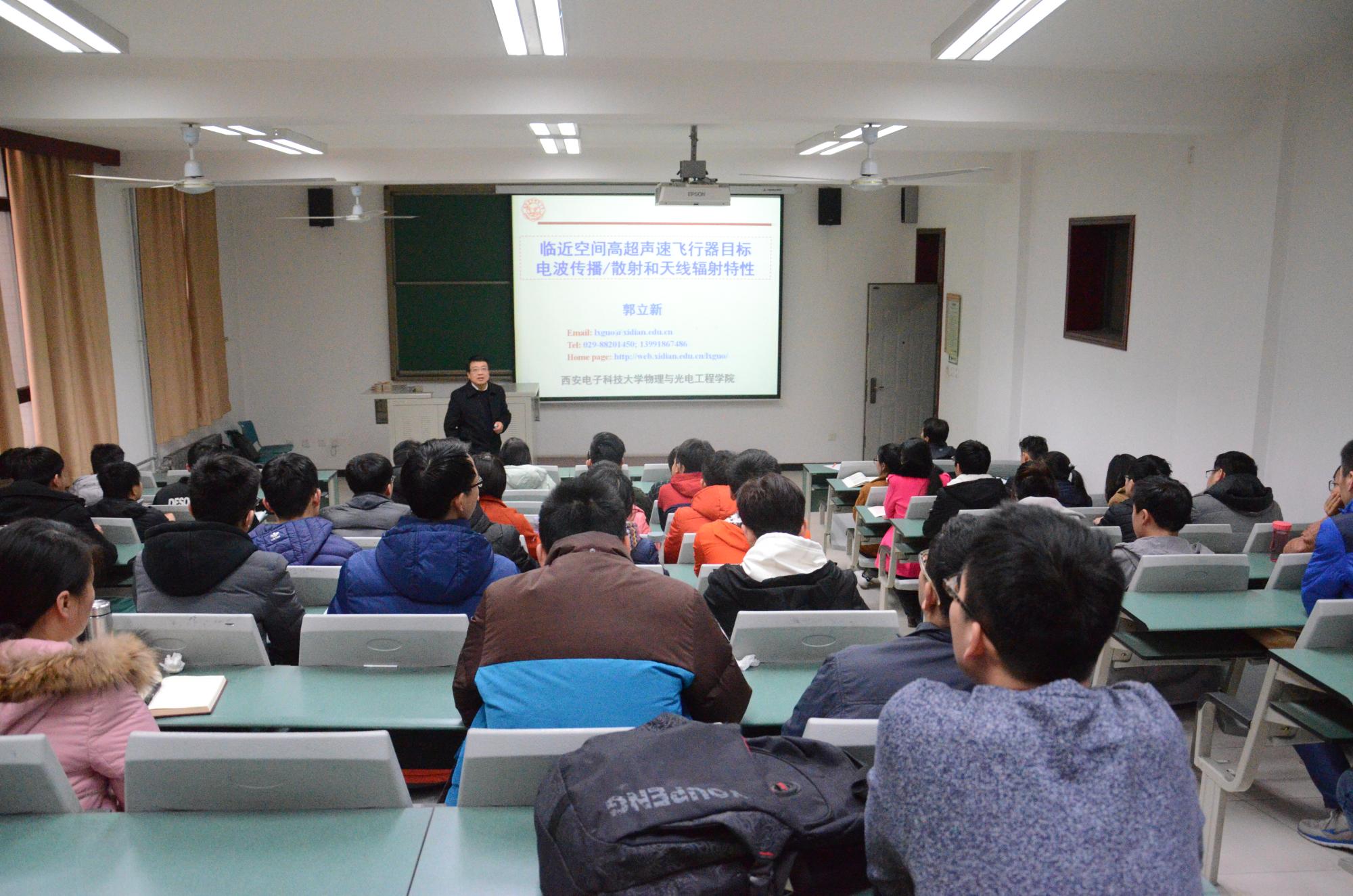 12月27日下午,物理与ballbet贝博执行经理,博士生导师郭立新教授应邀参加“求是历程,对话教授”活动,并于西大楼一区219教室为广大研究生做了题为“临近空间高超声速飞行器电波传播/散射和天线辐射特性”的报告。报告会由公司研究生辅导员李维嘉主持。