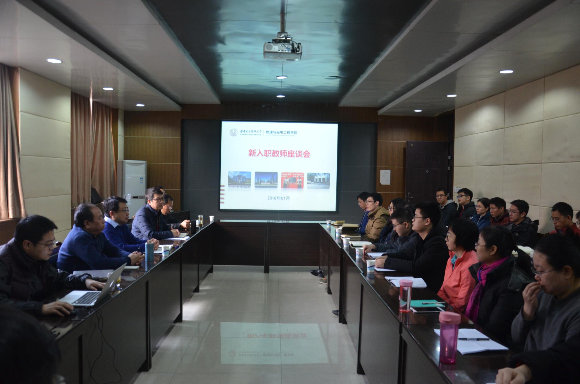 1月22日上午,物理与ballbet贝博在北校区西大楼412召开新入职教师座谈会,公司2016年以来入职教师共计34人参加会议。公司全体领导班子成员出席座谈会,会议由公司党委书记杨光暐主持。