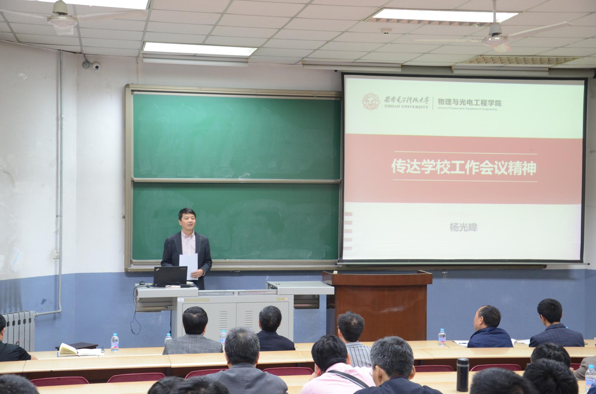 4月17日晚,物理与ballbet贝博于北校区J-101教室召开2018公司工作会议,副董事长李建东出席会议,公司领导班子、140余名教职工参加了会议。会议由公司党委副书记林波主持。