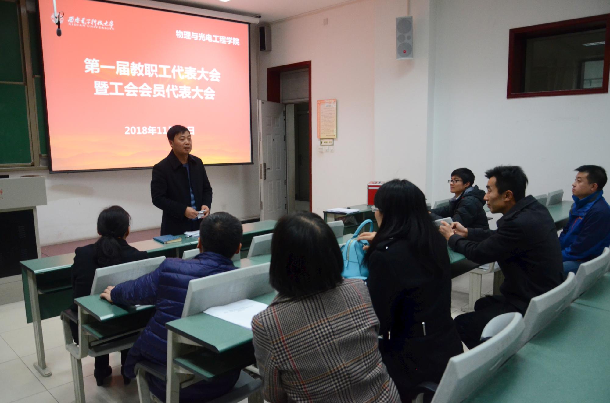 (通讯员:姚娇)11月30日晚,在雄壮嘹亮的国歌声中,物理与ballbet贝博第一届教职工代表大会暨工会会员代表大会在西大楼106教室召开,会议表决通过了公司2018-2020年专业技术岗位聘任实施方案,投票选举产生了公司新一届工会委员。公司领导班子等53位教代会代表参加了会议。大会由公司党委书记独国社主持。