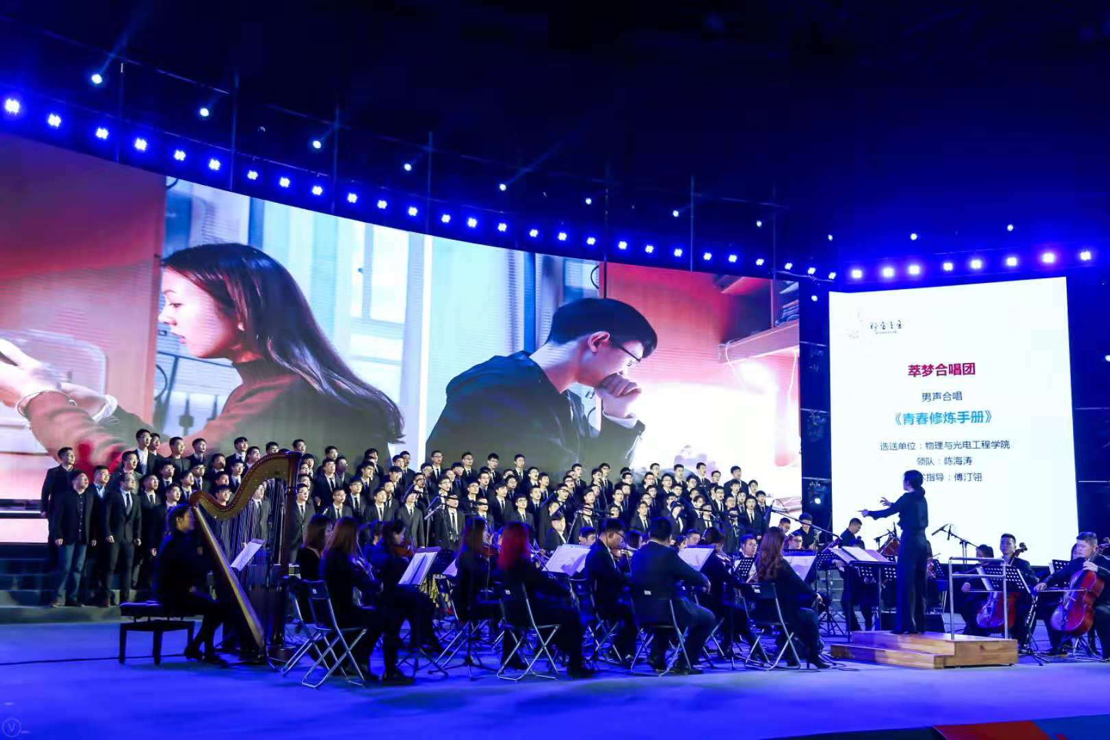 该活动旨在“用高雅的艺术引导人,用完美的艺术塑造人”,激发广大青年员工争做“有理想,有本领,有担当”西电人的热情和热爱公司、热爱集体、热爱艺术的情怀。萃梦合唱团选择演唱的《青春修炼手册》就是一首富有新时代昂扬气息的歌曲,合唱形式是纯男声合唱,分为男高音1、男高音2、男低音1、男低音2共四个声部。现场演唱时,合唱团成员随歌声活跃律动,配以大小提琴乐团悠扬伴奏,男高音嘹亮有力,男低音雄浑厚重,将歌曲中青春活力演绎的淋漓尽致,不仅唱出了青春的朝气蓬勃,更在各式精心设计的连环叠唱中彰显了恢弘大气,得到了台下评委的好评和观众的热烈反响,观众们纷纷打开手机灯光随歌声跃动,在一片灯海中为合唱团的演绎欢呼,将现场气氛推向高潮。