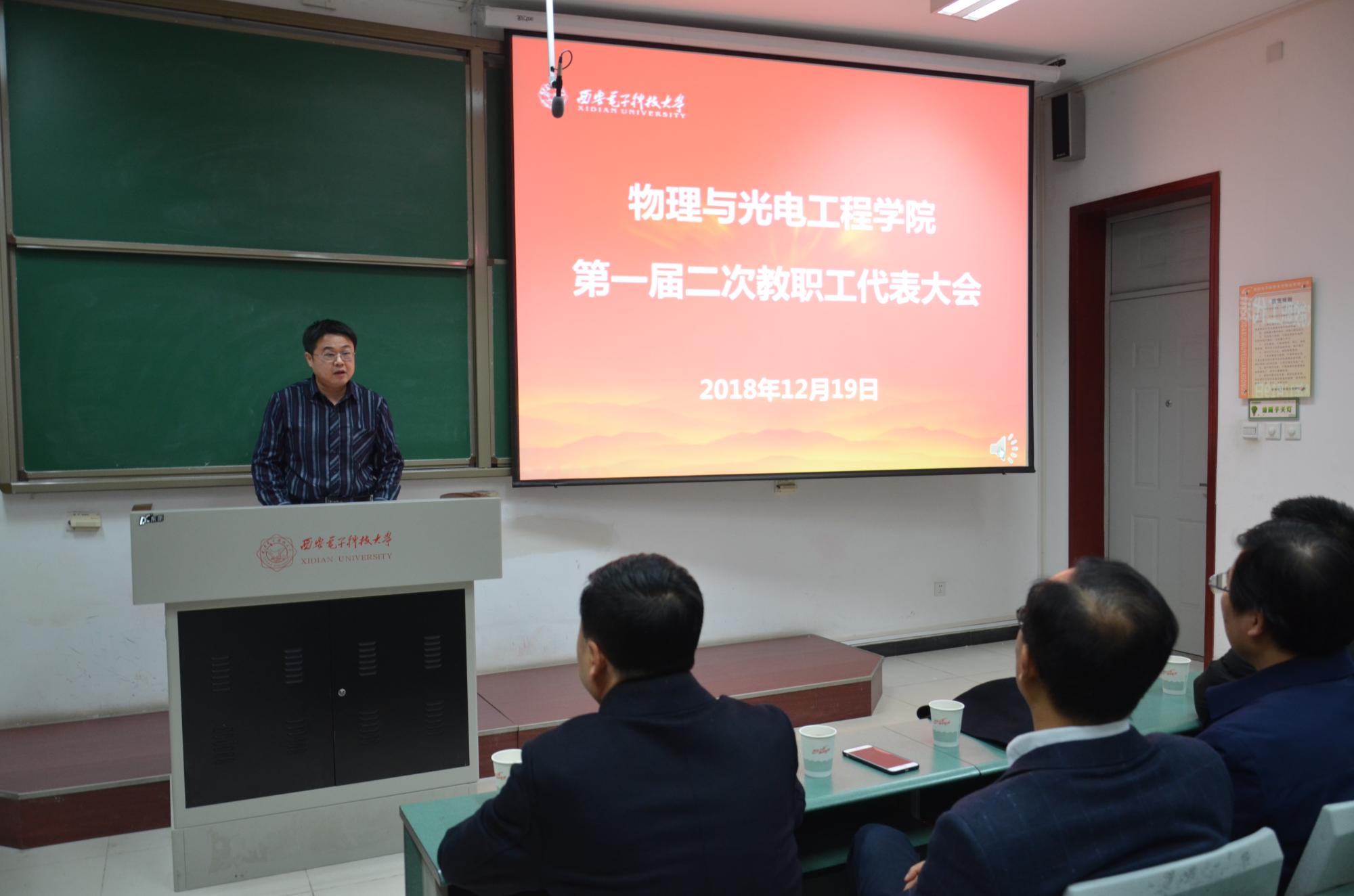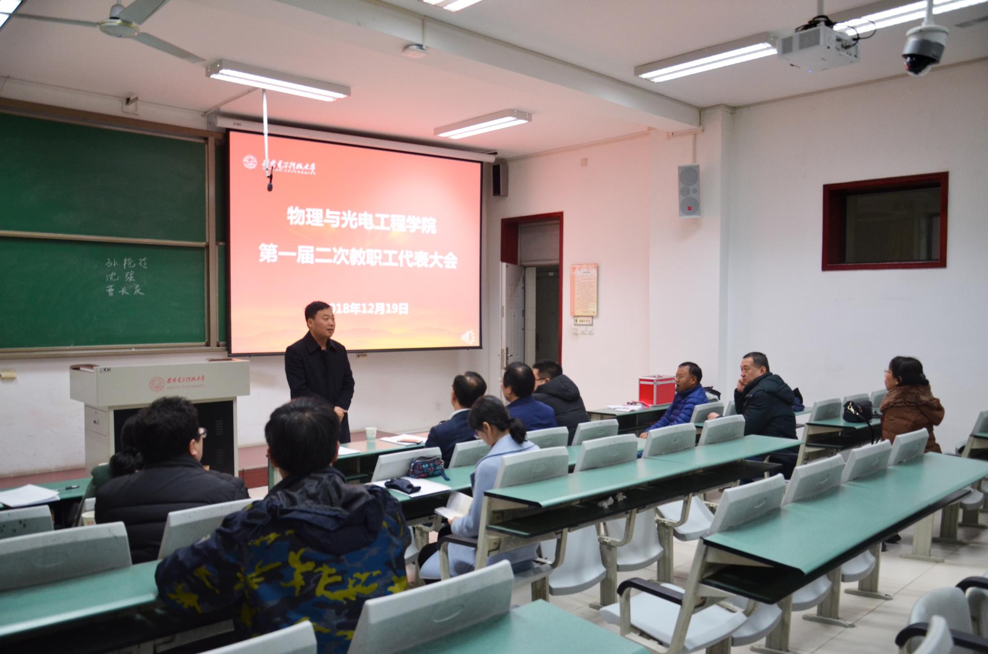 (通讯员:姚娇)12月19日晚,物理与ballbet贝博第一届第二次教职工代表大会暨工会会员代表大会在西大楼106教室隆重召开,会议选举产生了公司出席公司第六届教职工代表大会暨工会会员代表大会的代表。副董事长高新波、校扶贫办主任沈强、公司领导班子等47位教代会代表参加了会议。大会由公司党委副书记林波主持。
