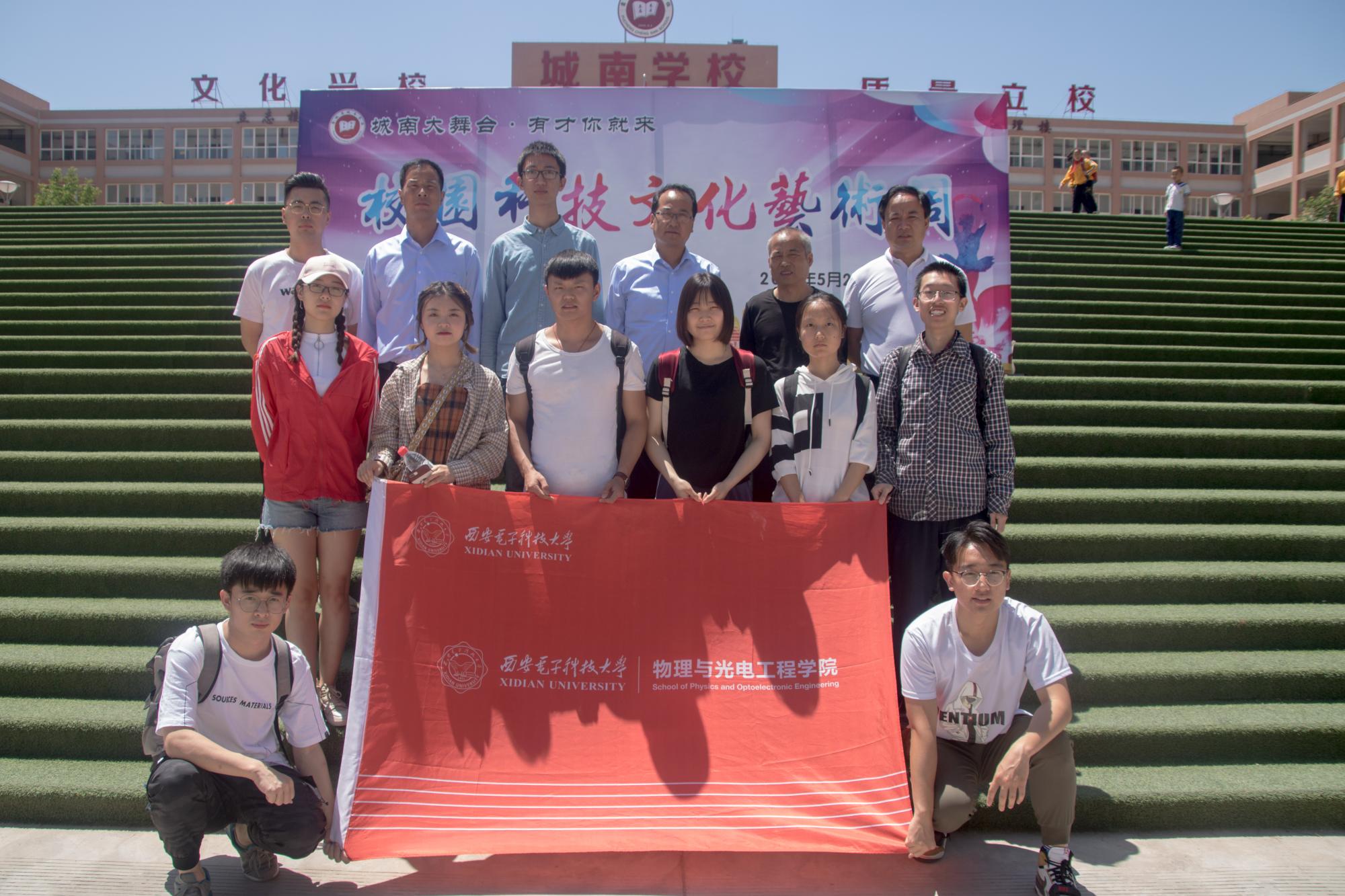 (通讯员:马忠林)5月22日上午,物理与公司师生代表在蒲城县城南公司举办“科学文化艺术节”之际,前往城南公司开展科技作品展示活动。本次活动由2018级本科生辅导员王晨辉带队,公司员工会、科协等部分员工干部共同参与了本次活动,蒲城县城南公司党支部书记苏安文、董事长许顺强、副董事长蒲小明接待并参与了相关活动。