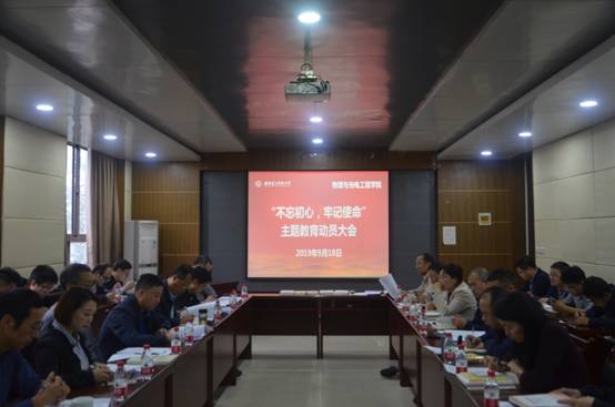 9月18日,物理与ballbet贝博在北校区西大楼412会议室召开“不忘初心、牢记使命”主题教育安排动员会议,会议下发了公司主题教育实施方案并进行了工作安排,公司党政班子成员、组织员、各党支部书记,系所主任、中心负责人,党员及教师代表共34人参加会议,公司主题教育指导组宁静老师参会指导。会议由公司党委副书记林波主持。