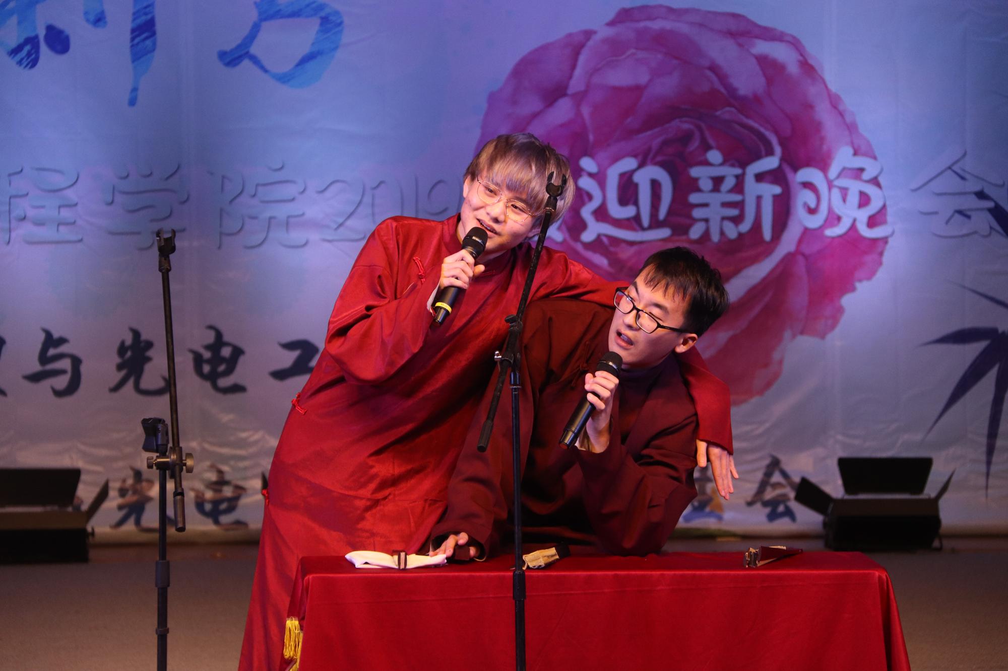 紧接着,郑浩楠同学一首《光年之外》将观众们带入晚会的欢乐气氛;员工会文艺部为同学们带来了原创光影剧《光影少年》,用肢体与光影的绝妙配合展现了新学期专属于新生的西电记忆:从独自踏上火车的紧张、告别时的泪水、初到校园的激动以及认识新朋友的欣喜等;口琴和手风琴合奏的《未闻花名》轻柔舒缓,令人沉醉;辅导员王晨辉、韩金虎现场抽取了幸运观众并为新生送上了祝福,希望同学们在美丽的ballbet贝博martini能够不负韶华、学有所成;抽奖环节过后,晚会继续进行。介四相声社带来的相声《我要招新》令现场观众捧腹大笑,欢笑声不绝于耳;B-force街舞社带来的舞蹈《快乐黑怕》,用明快的节奏带我们领略了协调的美感与团队的力量;新生同学展现了自己的风采,带来的歌曲串烧娓娓动听。在此之后又到了紧张刺激的游戏环节,在场观众自发上台参与游戏《谁是卧底》,大家斗智斗勇、绞尽脑汁,参与互动的同学们均领取到了精致的小礼品。