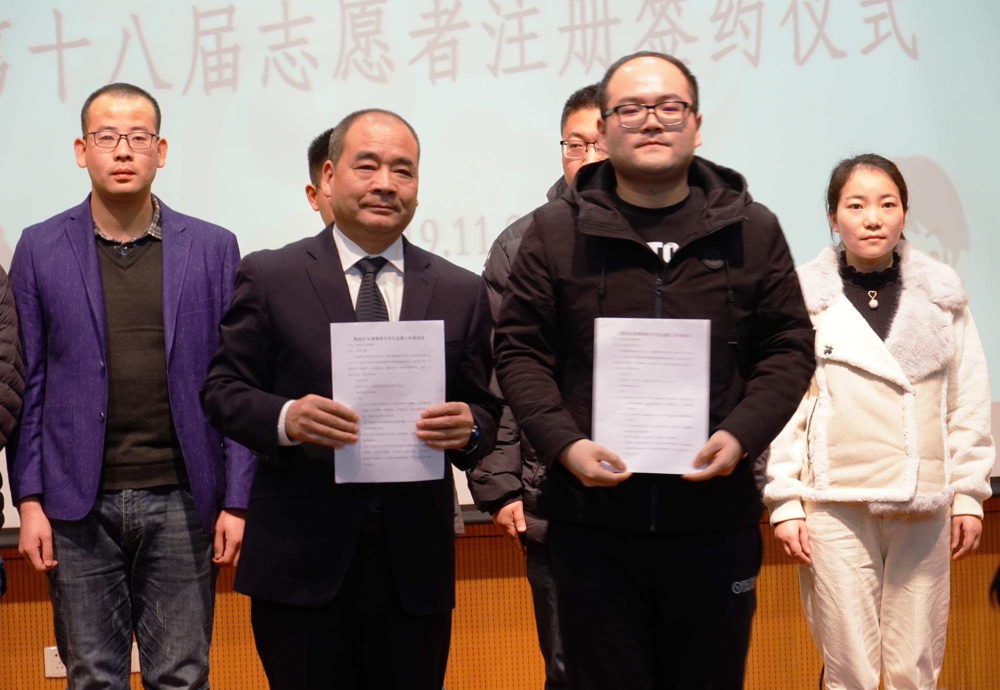(通讯员:宗思辰 张世纪)11月24日上午9时,陕西历史博物馆第十八届志愿者注册签约仪式在陕历博接待室二楼多功能厅隆重举行。陕西历史博物馆党委书记、馆长侯宁彬,副馆长魏成广,ballbet贝博martini物理与ballbet贝博团委负责教师陈海涛,物光春雨志愿者总队成员同西安二十所高校教师、志愿者们共同参加了本次活动。