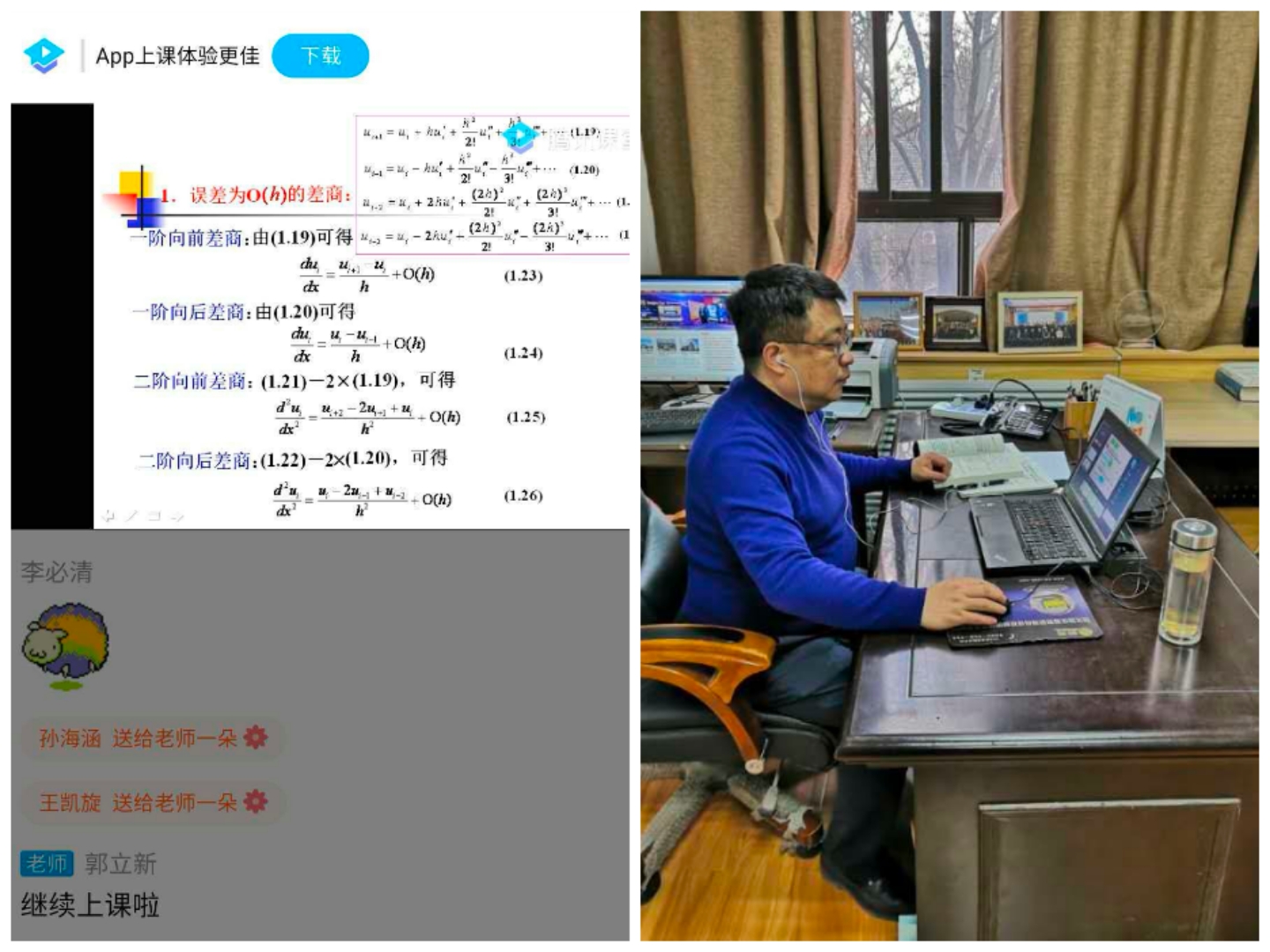 积极准备、认真备战,老师们怀着忐忑的心情迎来了线上教学“第一课”。刘忠玉老师课后说:“我课前一小时就把两台机子调试好,反复试验,满手心、满后背是汗,但事实证明有惊无险,一切正常”。郭立新老师、张民老师、魏兵老师、韩香娥老师、郭宏福老师、杨瑞科老师等老师纷纷叮嘱青年教师:“一定要保证教学效果”,“千万不能自说自念地读PPT”,“一定不能偏离教育的本质-育人、启智”。在教学交流中,老师们踊跃讨论,用他们的热情,以育人、启智为目标,奉献上一堂一堂的线上教学课。