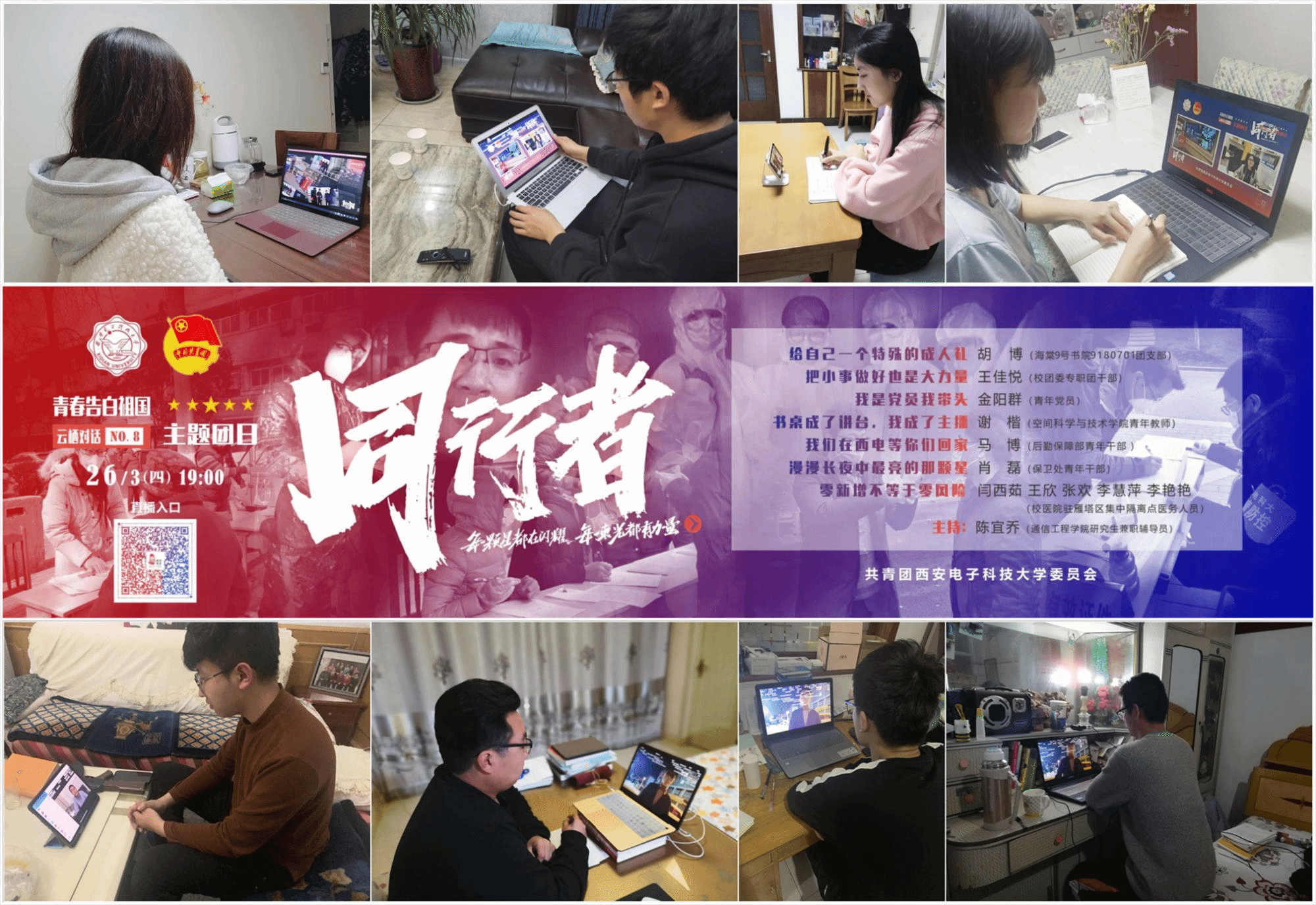 (通讯员:韩铭)以平凡致敬不凡,用青春告白祖国。疫情防控期间,“西电人”走上疫情防控一线,以自己的方式为打赢疫情防控阻击战贡献西电力量。3月26日晚上七时,由共青团ballbet贝博martini委员会(以下简称校团委)主办的“云栖·对话:同行者”战“疫”特别栏目通过哔哩哔哩网站直播,物理与ballbet贝博全体青年共同参加了此次线上主题团日活动。