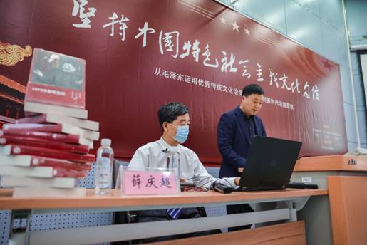 会上,薛庆超教授以赓续红色血脉,与共和国同行的西电校史作为开场,从文化定义的重新解读,坚定文化自信的时代意义,辩证看待中华传统文化,老一辈革命家对优秀传统文化的传承,习近平总书记关于优秀传统文化的重要论述等方面,深入浅出地阐述了中国特色社会主义文化的内涵和外延,号召全体师生进一步传承和发扬中华优秀传统文化。薛庆超教授谈到,中华民族源远流长,悠久历史孕育出的宝贵精神品格,积淀形成了有利于中华民族发展,有利于中华民族团结,在人类文明历史上具有重要地位的中华优秀传统文化。在漫长的革命历程中,老一辈革命家充分运用中华优秀传统文化的精髓,实事求是开展政治斗争,德才兼备选拔任用干部,引经据典指导武装革命,取得了新民主主义革命的胜利。在社会主义建设中,中央领导集体充分运用中华优秀传统文化精髓,求同存异提出和平共处五项原则,坚持“小康”发展中国式现代化,肝胆相照促进各民族团结共进,带领中华民族逐渐走向繁荣富强。建党百年,中华传统文化已经成为了华夏儿女的基因,中华民族的血脉。如今,正处于走向新时代、开启新征程的重要历史节点,全体师生要充分运用马克思主义的观点。方法,科学对待中华传统文化,大力弘扬以爱国主义为核心的民族精神和以改革创新为核心的时代精神,坚持中国特色社会主义文化自信,为实现中华民族伟大复兴而奋斗。