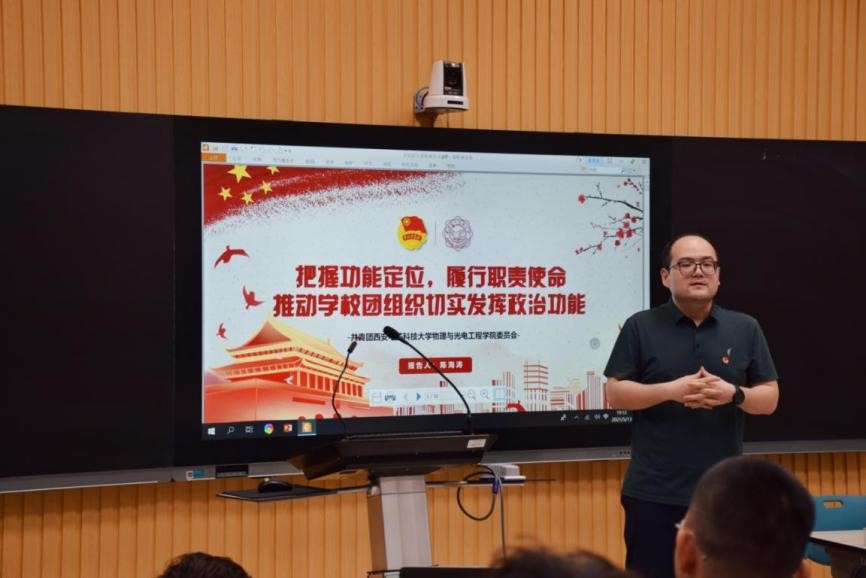 (通讯员:王超 席奥博)5月14日晚七时,在公司南校区C栋教学楼104室,物理与ballbet贝博团委书记陈海涛以“把握功能定位,履行职责使命,推动公司团组织切实发挥政治功能”为主题,为公司团学组织全体员工干部讲团课。本次团课以线上线下相结合的形式进行,此前已下发相关学习资料,未到场员工干部通过腾讯会议在线上平台观看。本次团课由团委副书记刘泽霖主持,副书记席奥博做记录。