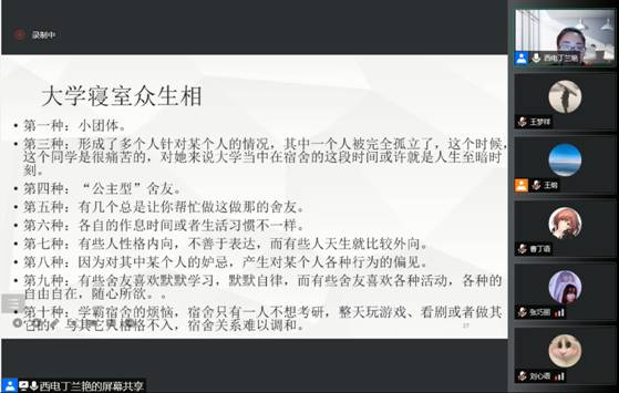 没有人愿意被孤立、被排挤。当前时期,公司认真落实防疫要求,丁老师对宿舍制动期间可能会面临的人际关系紧张有效地进行了辅导。她将方法和事例结合起来现场教学,逐一介绍了同学们关于洗澡唱歌、打扫卫生、作息时间不一致等常见情形的妥善处理方式。