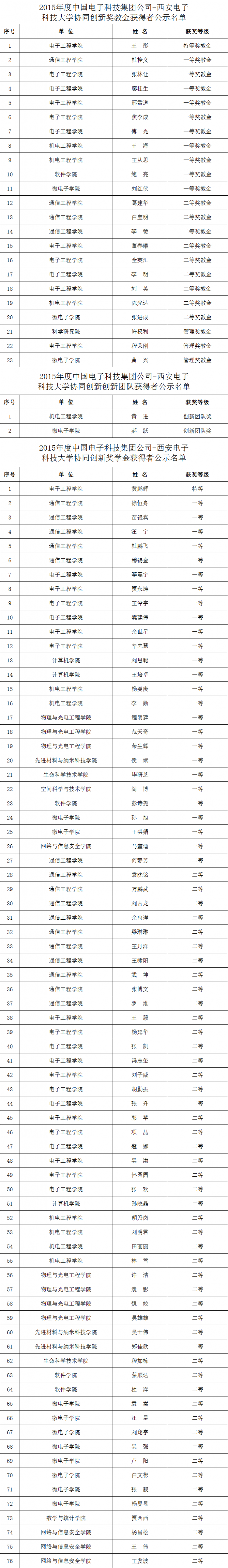 2015年度中国电子科技集团公司-ballbet贝博martini协同创新奖教金获得者公示名单