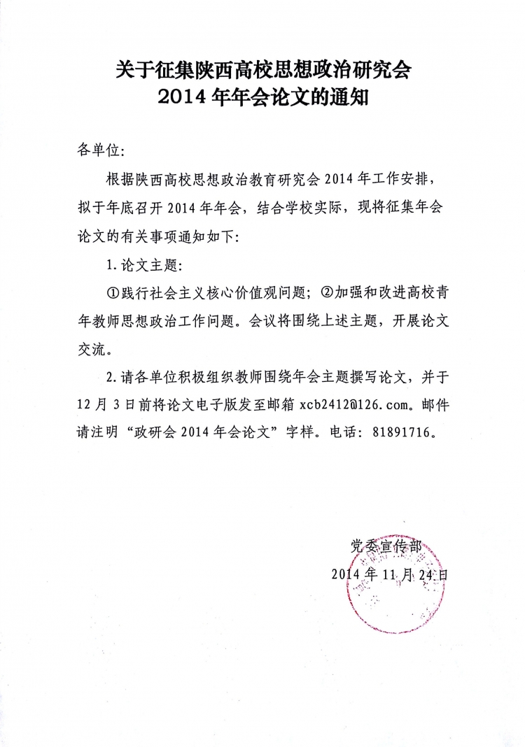 【思政】关于征集陕西高校思想政治研究会2014年年会论文的通知