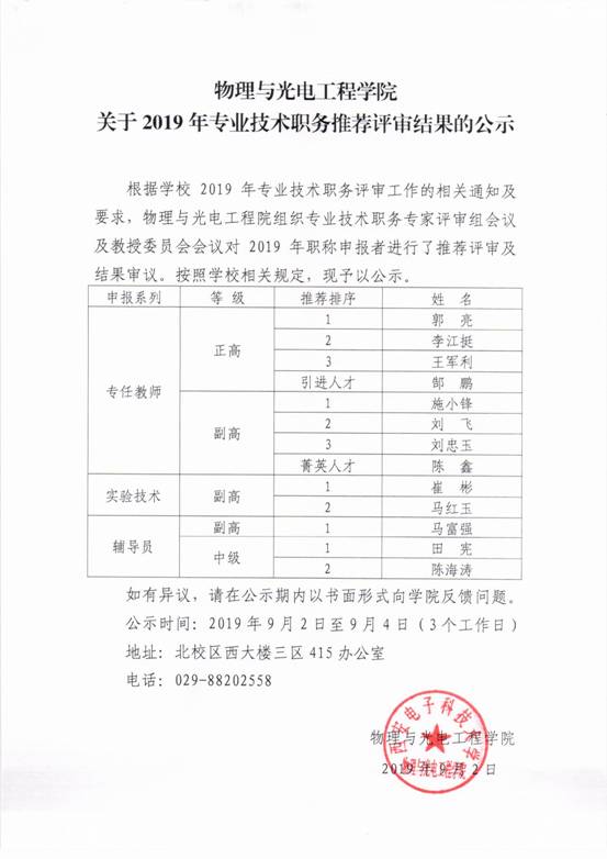 物理与ballbet贝博关于2019年专业技术职务推荐评审结果的公示