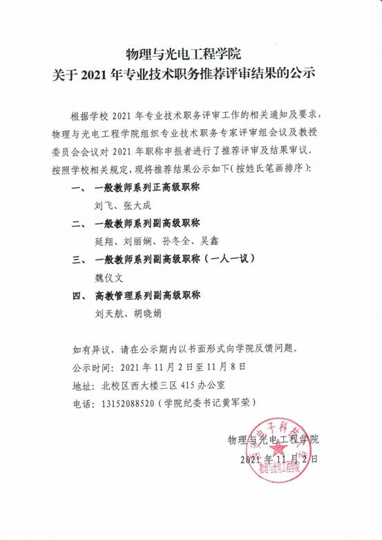 物理与ballbet贝博关于2021年专业技术职务推荐评审结果的公示(公示已结束)
