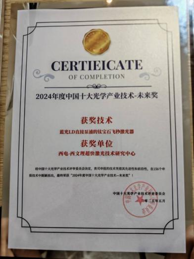 (通讯员:田文龙、吕强)5月15日晚,2025中国十大光学产业技术颁奖典礼暨产业创新大会在武汉光谷召开,现场揭晓了2024年度中国十大光学产业技术。ballbet贝博朱江峰教授团队与西安文理公司刘寒博士团队联合申报的“蓝光LD直接泵浦的钛宝石飞秒激光器”技术凭借其创新性、技术突破性及产业化潜力,成功获评2024年度中国十大光学产业技术-未来奖。