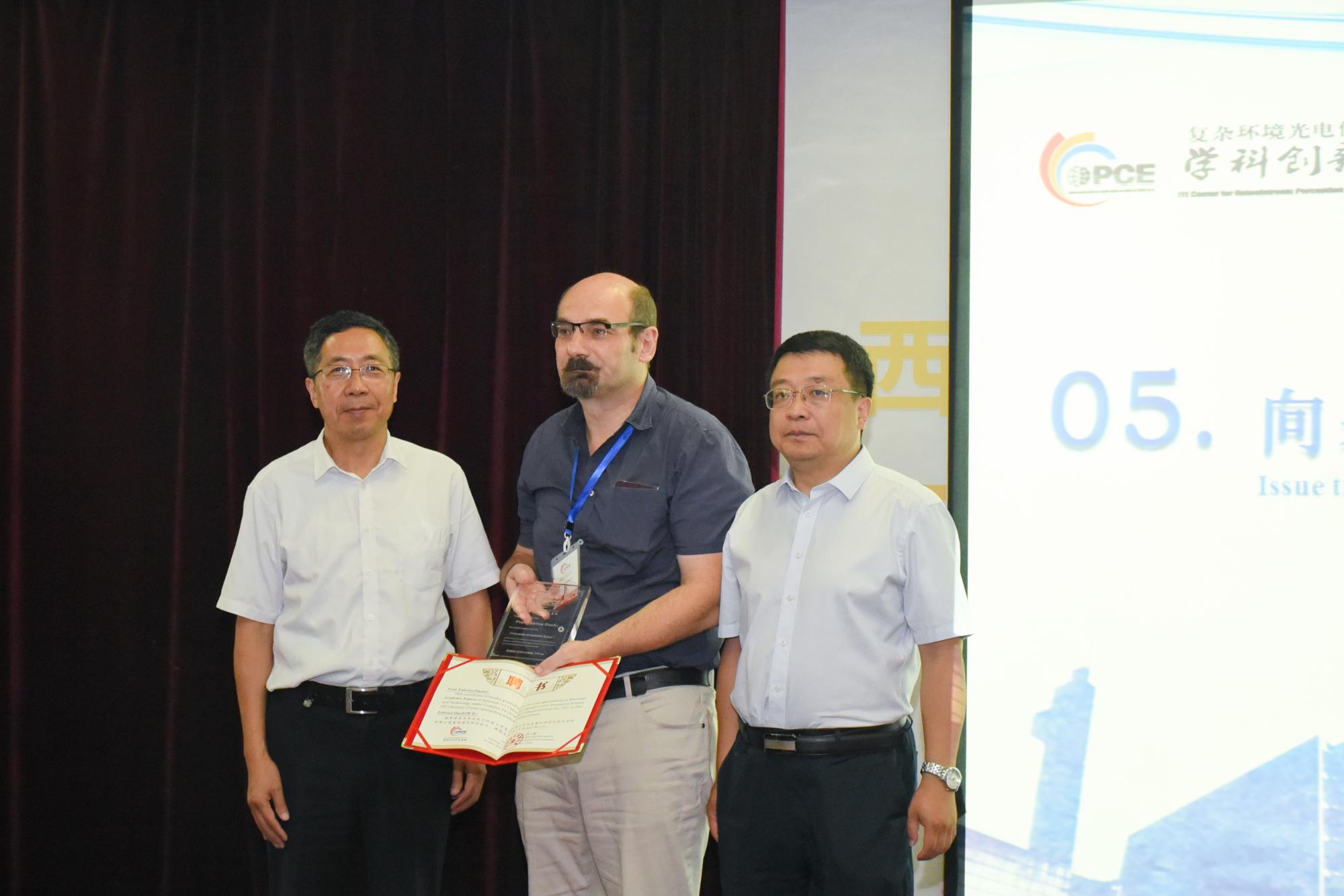 开幕式结束后,来自美国马里兰大学的Chein-I Chang教授、美国杜克大学的Qinghuo Liu教授、法国艾克斯-马赛大学的Fabrice Onofri教授、英国谢菲尔德大学的Yang Zhang教授、日本电气通信大学的Ken-ichi Ueda教授、法国鲁昂大学的GérardGouesbet教授、法国鲁昂大学的Kuanfang Ren教授、澳大利亚新南威尔士大学的Mark R. Pickering教授、华盛顿国际科学技术研究所的Wenhua Yu教授、加拿大国家通信研究中心的Qingsheng Zeng教授、新西兰梅西大学的Ruili Wang教授等17位海外学术专家针对自己的研究领域作了学术报告,为大家展示了其在复杂环境与目标光电特性、电磁散射特性及电波传播特性、光电信息与图像处理、新体制成像及光电探测技术、激光技术与应用等领域的最新研究成果,并就相关学术问题与学者专家及师生代表进行了探讨和交流。报告会现场学术气氛热烈,掌声不断,大家畅谈自己的见解,碰撞出许多的火花。