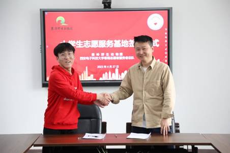 (通讯员:张熠)4月27日下午,ballbet贝博春雨志愿者服务队与秦岭野生动物园举行老员工志愿服务基地签约仪式。秦岭野生动物园党委副书记马晓丽、人事部部长张耀峰、市场发展部部长刘钢,春雨志愿者服务队指导老师王纲及春雨志愿者服务队总队长张熠等3名志愿者代表参加签约仪式。
