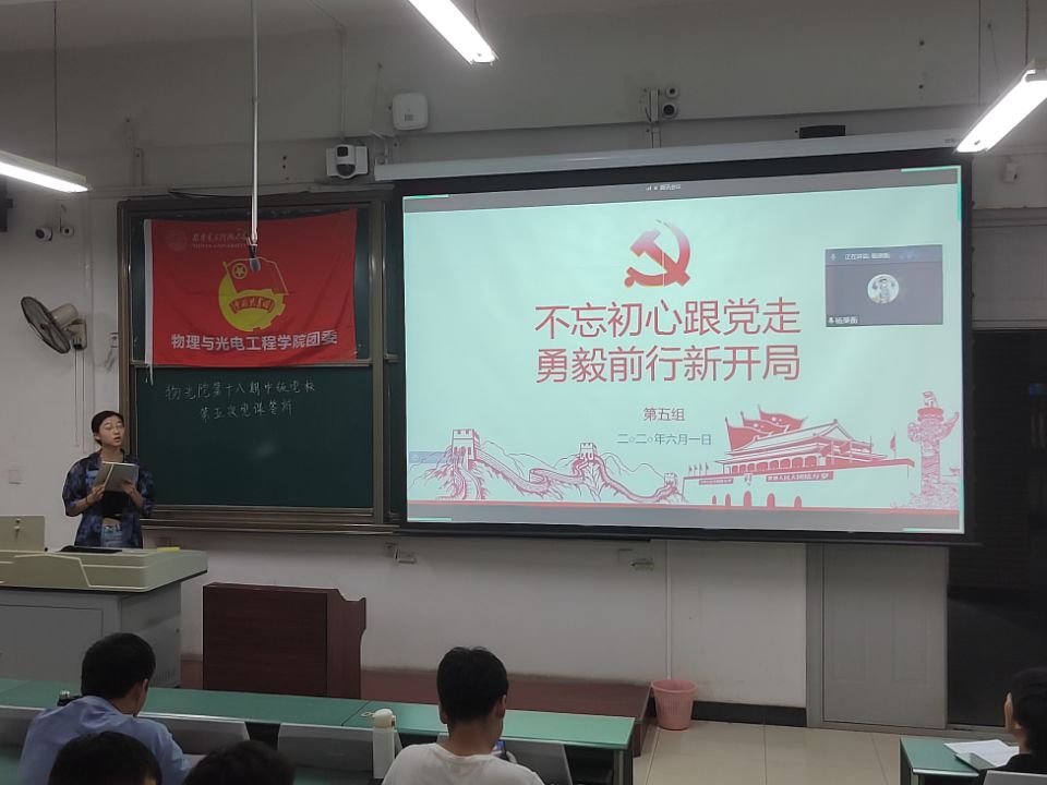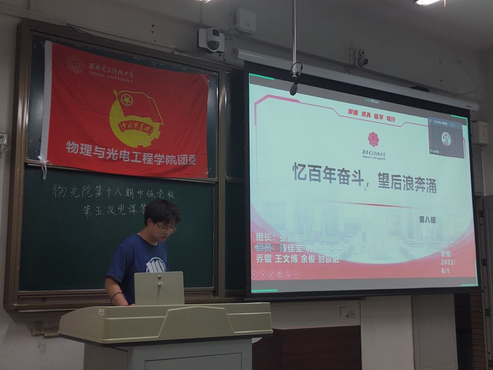 6月1日晚19时,ballbet贝博第18期中级党校第五次党课在南校区教学楼A楼314教室进行。本次党课以“喜迎二十大、永远跟党走、奋进新征程”为主题,全体学员分为9组,在分组讨论的基础上,通过答辩展示分享学习成果、交流学习心得。