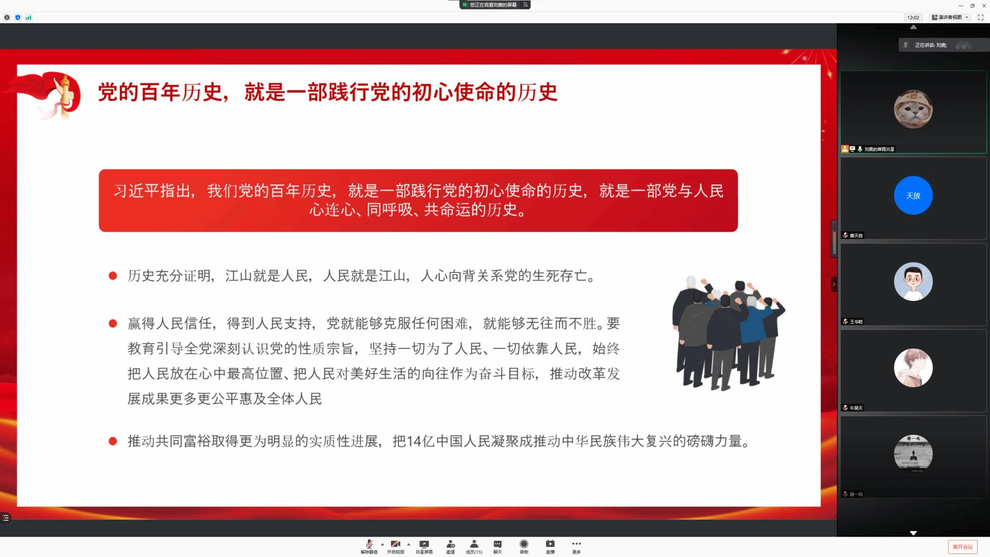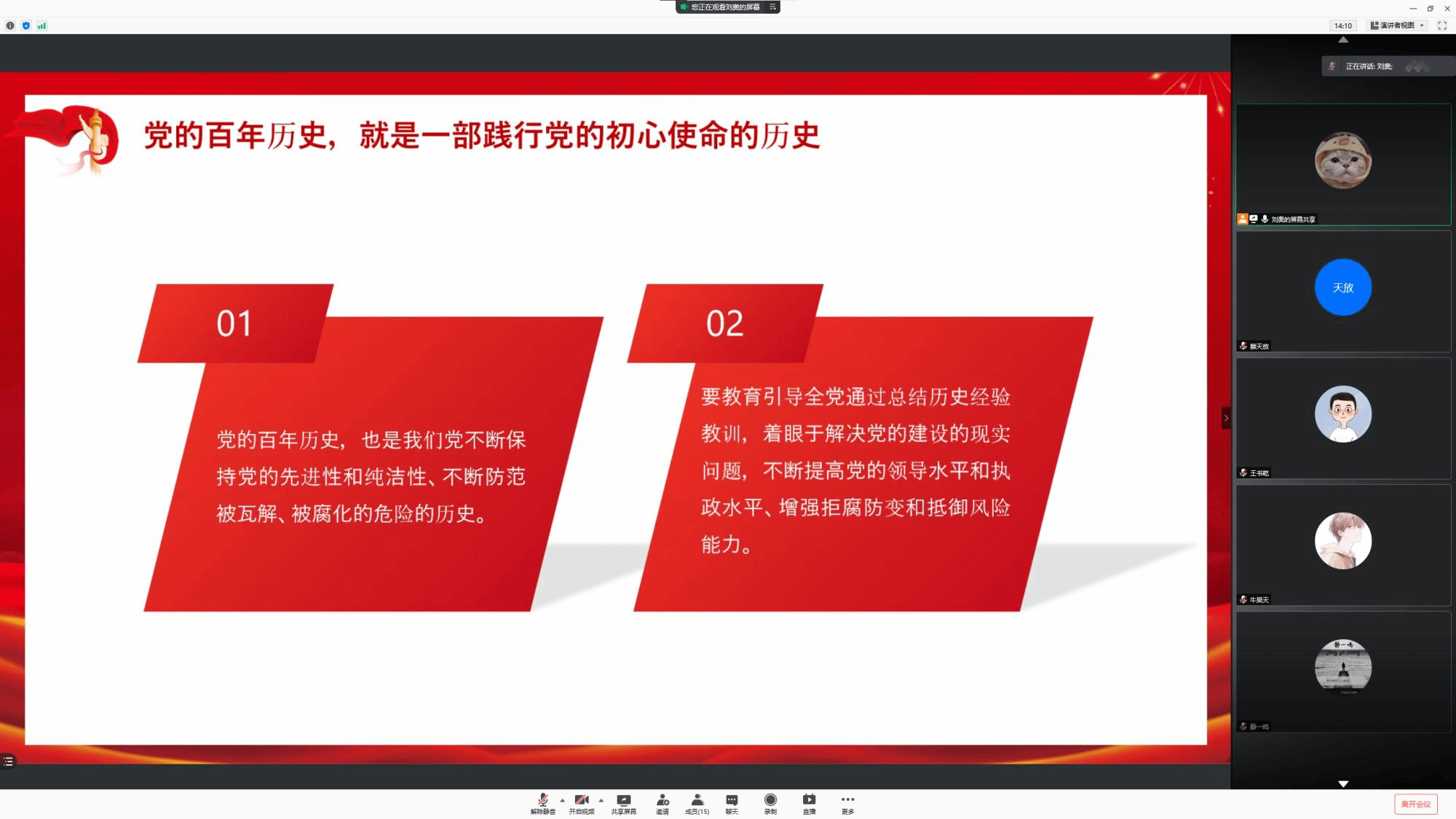 会上,刘奥从“矢志践行初心使命的一百年”“一部不断推进马克思主义中国化的历史”“一部践行党的初心使命的历史”以及“旗帜鲜明讲政治、保证党的团结和集中统一是党的生命”四方面内容组织学习。会议中,员工党员着重学习了习近平总书记关于开展党史学习教育的重要论述,围绕“为什么要学习党史”“学党史对老员工的积极作用”等主题开展讨论,意识到习近平新时代中国特色社会主义思想展现了出强大的真理力量,只有深入学习党史、四史,才可以用新时代的最新成果武装头脑、指挥实践、推动工作。