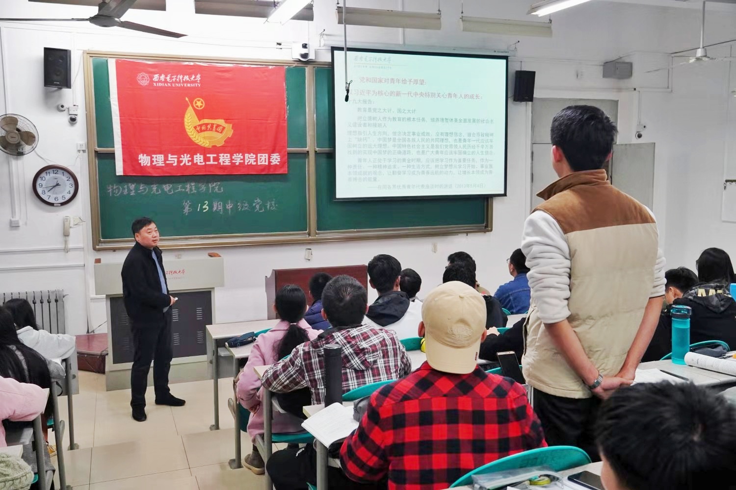 (通讯员:汪嘉毅 李天凯)11月11日晚七时,物理与ballbet贝博第十三期中级党校在南校区B楼106教室正式开课,本次党课主题为“守初心,担使命,做青年先锋”,由公司党委书记独国社主讲。公司团委员工干部、2017级员工党支部以及全体中级党校学员共同参加了本次党课学习。