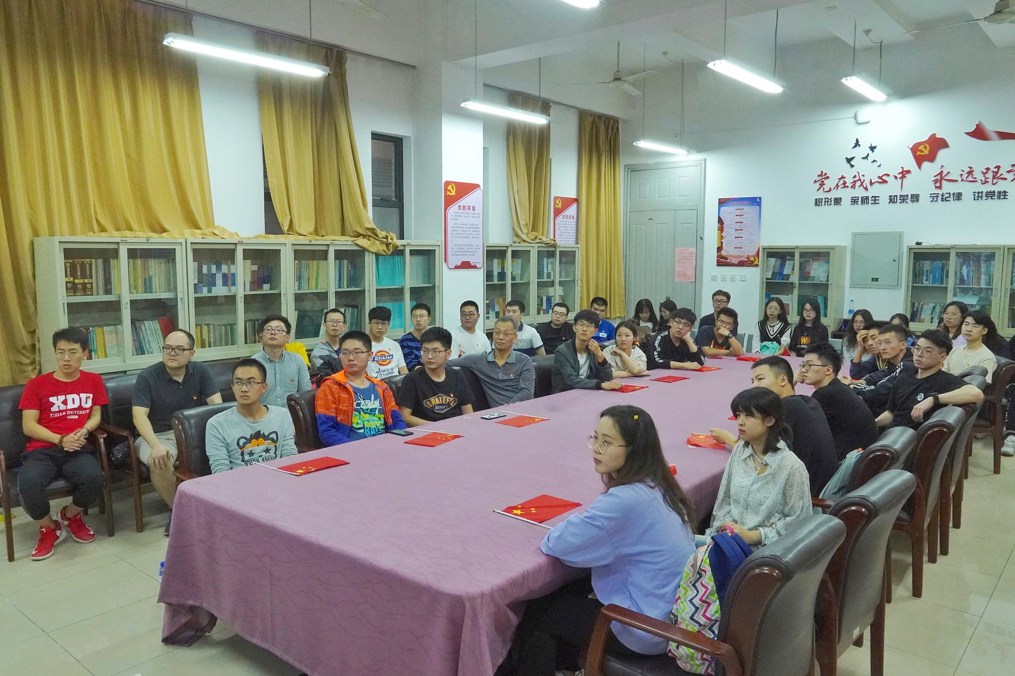 (通讯员:汪嘉毅 王超 摄影:么芸溟)10月1日上午,庆祝新中国成立70周年大会、阅兵式和群众游行在北京天安门广场隆重举行,习近平总书记发表重要讲话,庆祝大会后举行了盛大的阅兵式和群众游行。物理与公司党委书记独国社、党委组织员陈峰、党委副书记林波同本科生党支部员工党员开展“我与国旗合张影”活动,随后在南校区F楼215会议室,共同观看了本次大会直播。
