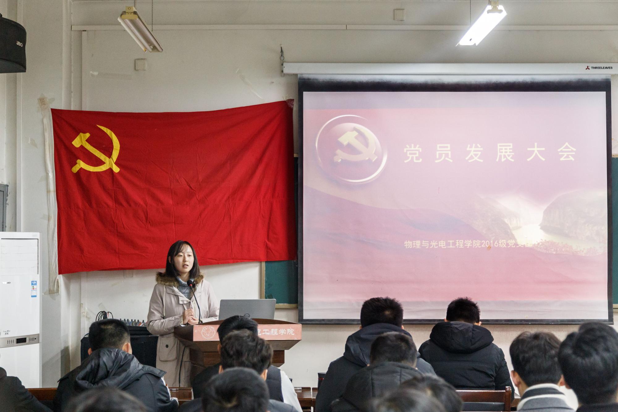 2017年12月17日晚,物理与ballbet贝博本科16级党支部召开党员发展大会,支部全体正式党员,36名发展对象和部分入党积极分子参加了会议。