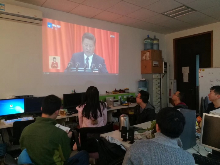 在三个半小时的时间里,公司师生认真聆听和学习了习近平总书记代表十八届中央委员会所作的工作报告,纷纷感到,报告立意高远、思想深刻,全面总结了过去五年党带领全国各族人民所取得的巨大成就,生动的描绘了下一阶段全党、全国人民奋斗的宏伟蓝图,鼓舞人心、催人奋进。