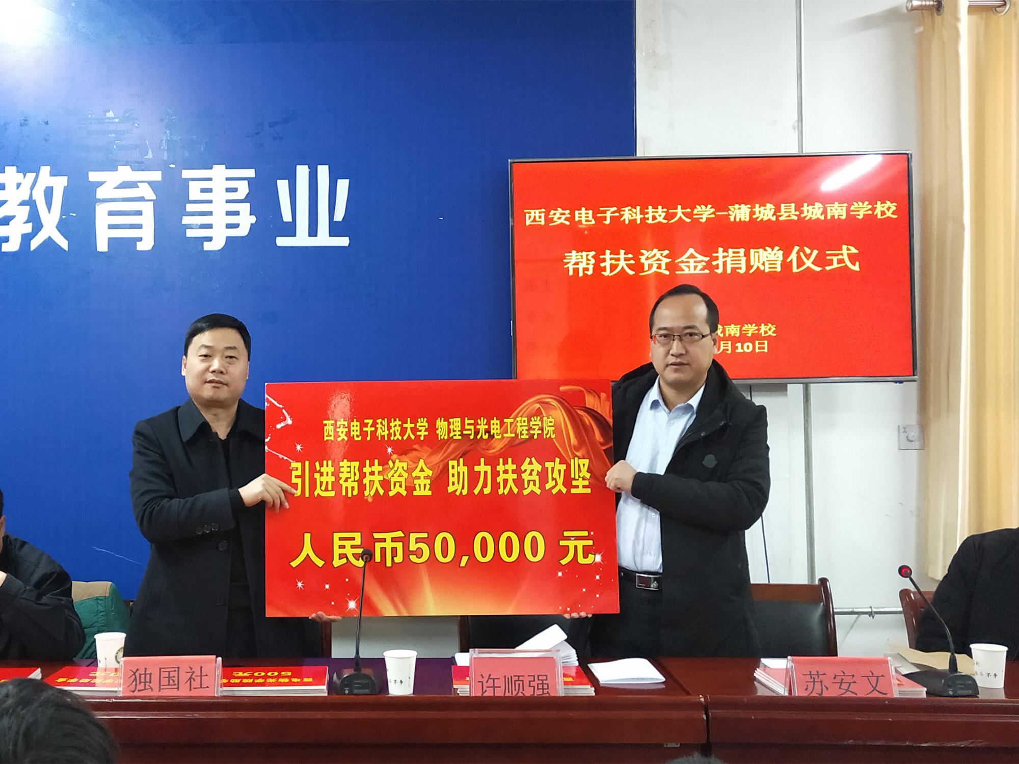 公司积极引进帮扶资金,助力城南公司脱贫攻坚为深入贯彻党中央、教育部和陕西省关于定点扶贫工作的相关要求,落实脱贫攻坚任务,巩固扶贫工作成果,物理与ballbet贝博充分发挥员工企业与合作单位资源优势,与西安中科洺光测控技术有限公司、洛阳长峰电子科技有限公司签署协议,引进数万元帮扶资金,用于进一步提升定点联系单位蒲城县城南公司的教育资源建设水平。其中,西安中科洺光测控技术有限公司一次性捐赠帮扶资金2万...