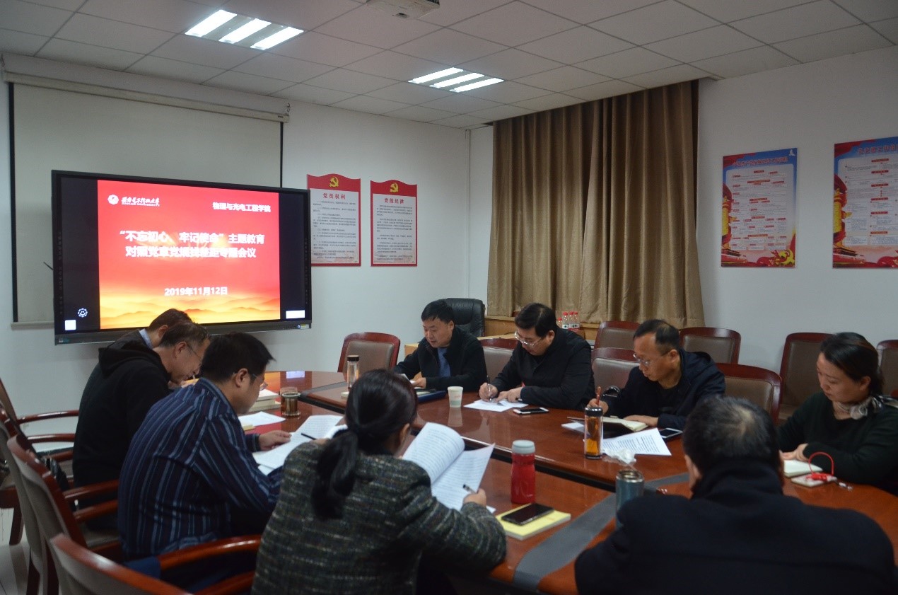 10月12日晚7点,物理与公司党委在北校区西大楼421会议室召开对照党章党规找差距专题会议,公司班子成员参加会议,校领导高新波、校指导组成员宁静到会指导。独国社汇报了公司班子认真准备问题检视,对照《中国共产党章程》、《关于新形势下党内政治生活的若干准则》、《中国共产党纪律处分条例》找差距工作开展情况,并代表班子对照党章党规“18个是否”逐一逐条进行检视说明。公司党员班子成员对照“18个是否”进行...
