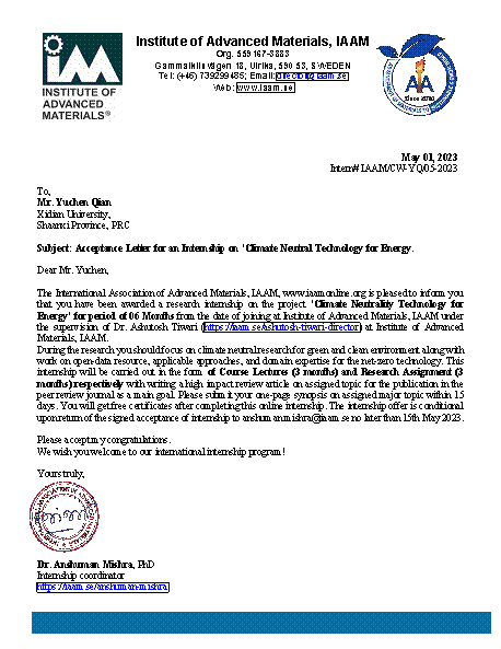 (通讯员:王纲、黄雅琪)近日,2020级电子科学与技术专业本科生钱禹辰收到了国际先进材料学会(IAAM)的线上实习offer,将在该组织进行为期6个月的科研实习。据了解,该组织本批次于国内共录取两名员工,钱禹辰同学是全校唯一入选员工候选人,同时这也是公司员工首次获得国际组织实习机会!国际先进材料学会(IAAM)是一个非营利性的国际科研组织,致力于推动材料科学和技术的发展和创新。该组织每年举办多场国际...